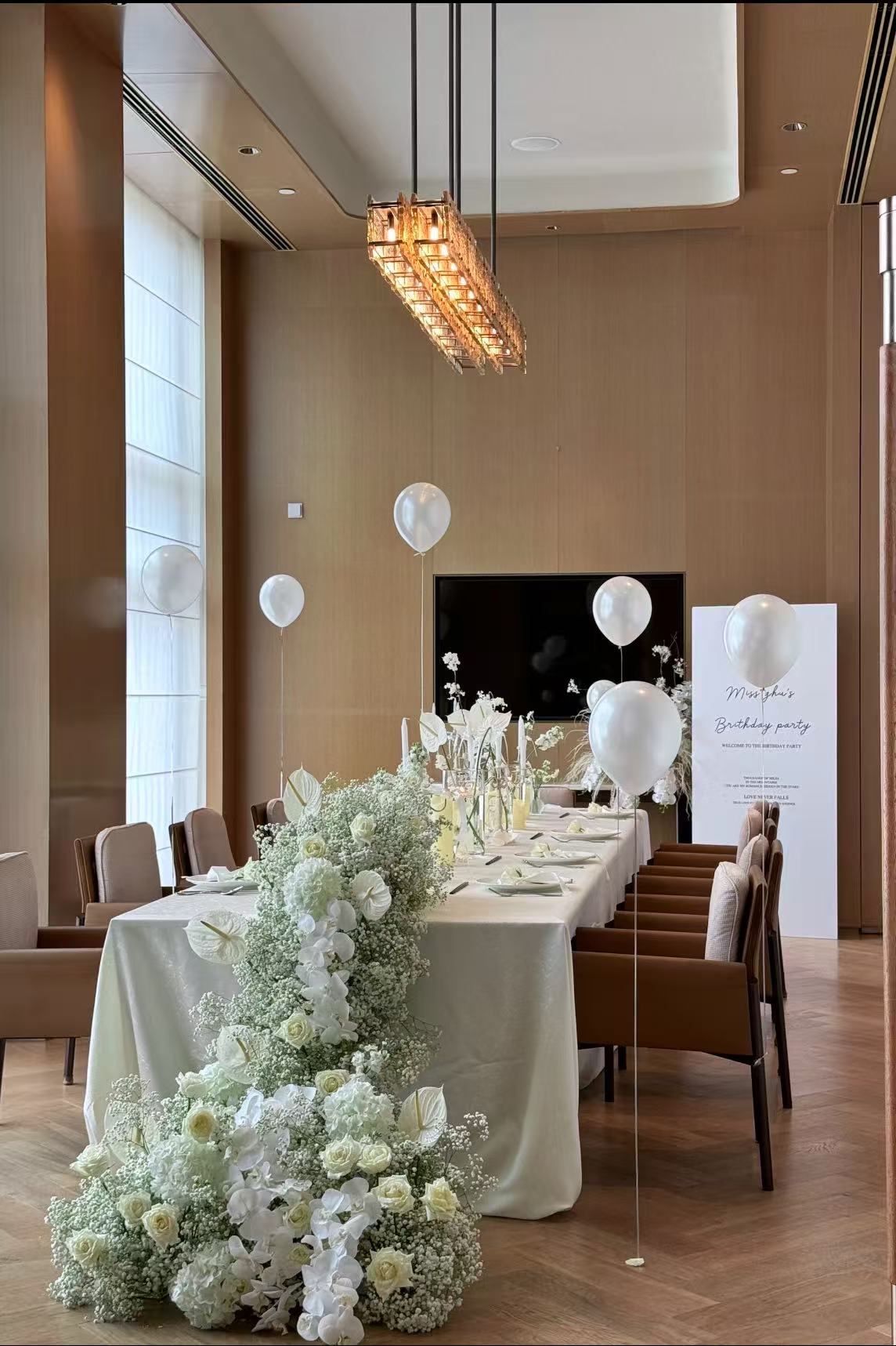 旬の花材をふんだんに使用したイベントやパーティー会場の装飾です。