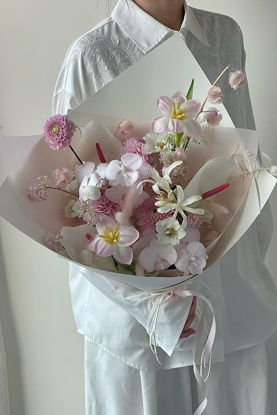 旬の花材をバランスよく組み合わせたブーケです。